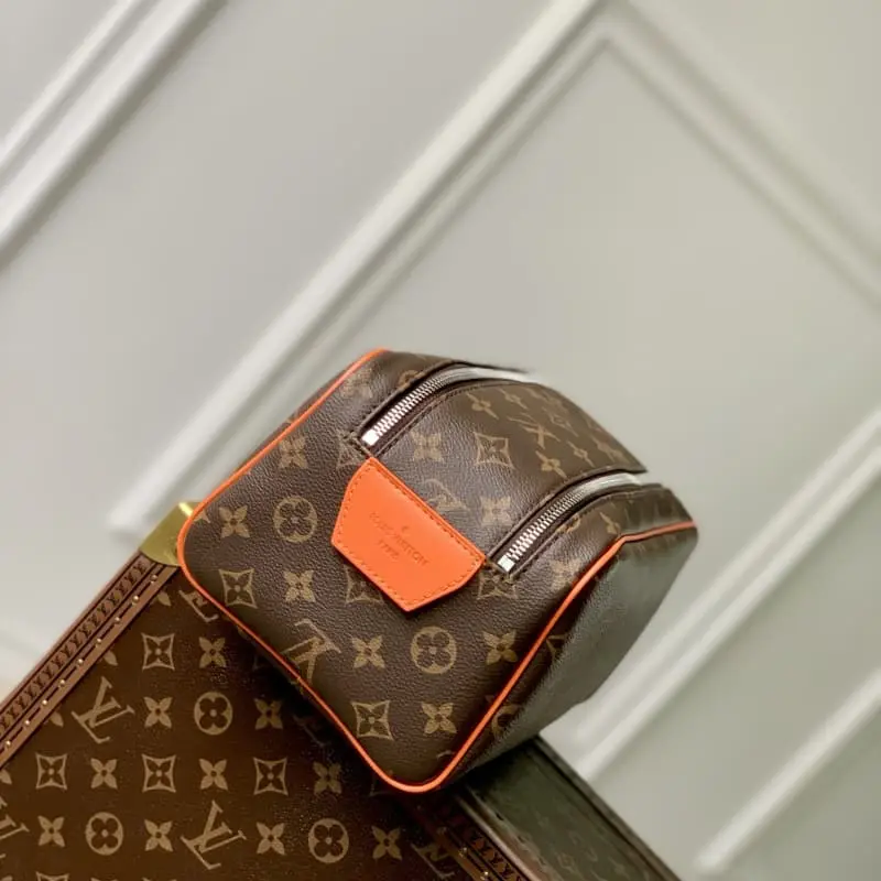 M47528 Orange (cosmetic bag) The large toiletry bag has a generous appearance and is made of soft canvas with a large double zipper opening for easy access. It can hold all your toiletry necessities. -Damier canvas texture leather lining -Silver silver accessories -Double zipper closure with leather strap -Built-in zipper patch pocket -size28x16x13cm.