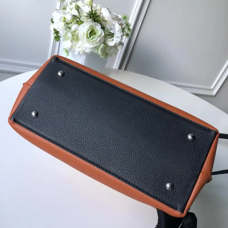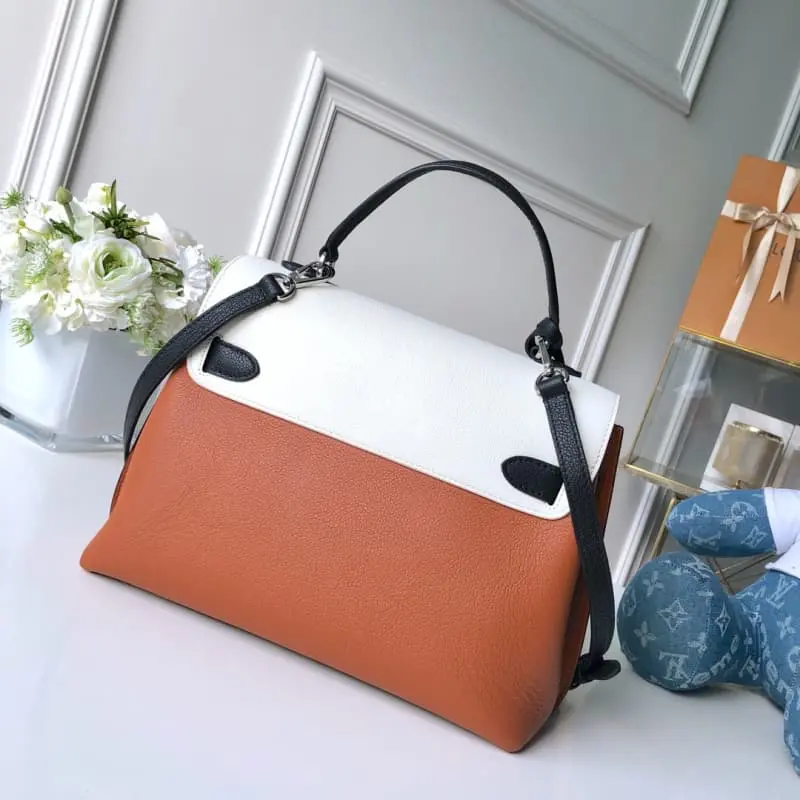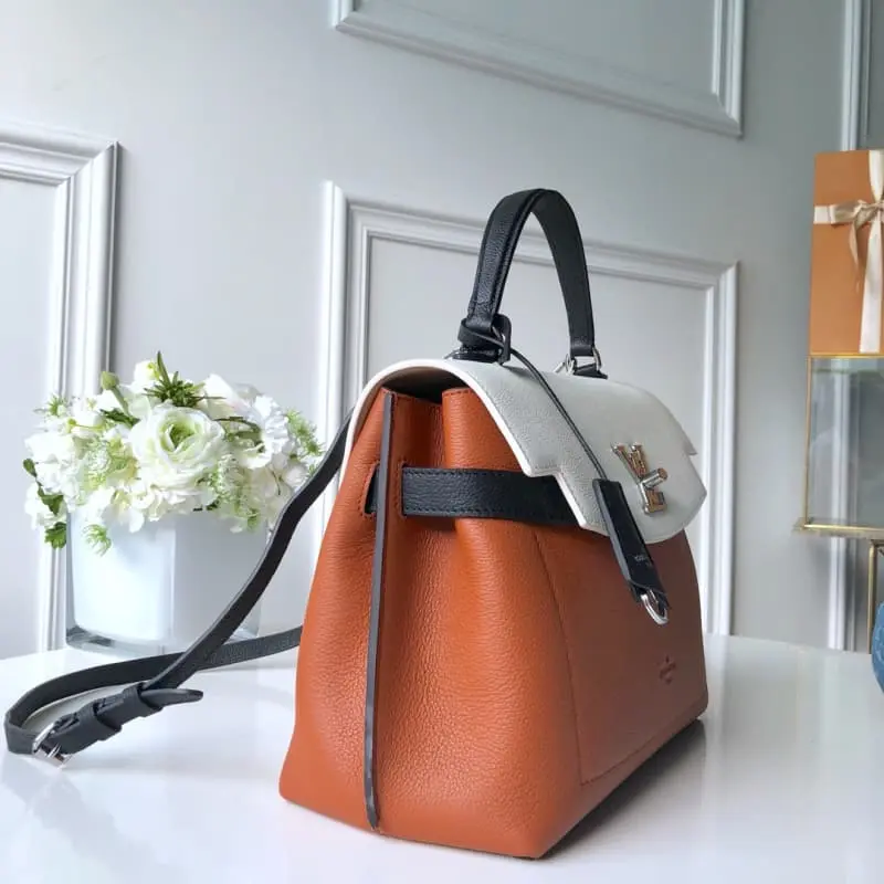 The M52360 Lockme Ever handbag is made of soft calfskin with a single handle and a stylish and layered appearance. The neat silhouette of the top flap adds a fashionable and modern touch to this soft and spacious handbag. The eye-catching silver LV turn lock is equipped with a leather shoulder strap to free your hands, an elegant choice for daily styling. Size: 31*46*17.