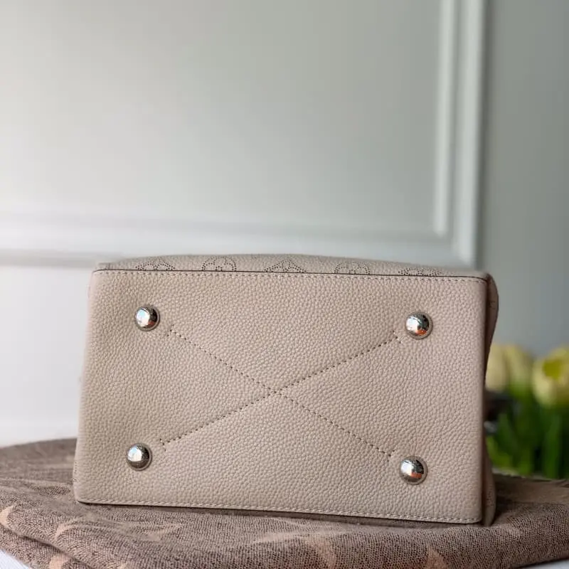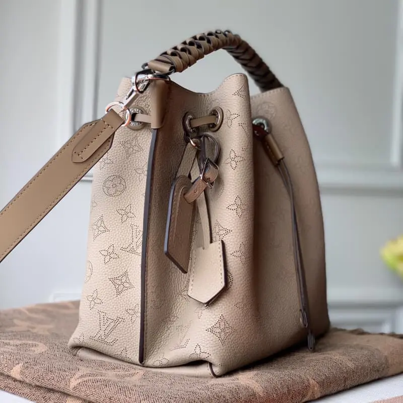 M55799 Muria bucket bag is made of perforated calfskin with perforations that slowly outline the Monogram pattern to embellish the brand and key bag. It is paired with a braided handle and a long leather shoulder strap. Dimensions: 25.0 x 25.0 x 20.0 cm (length x height x width).