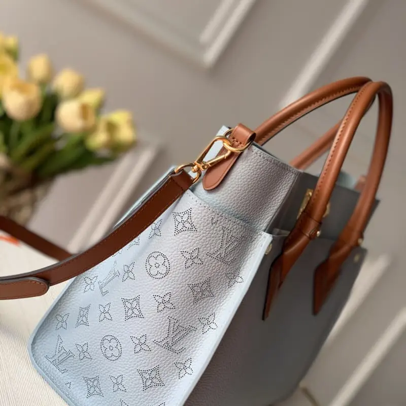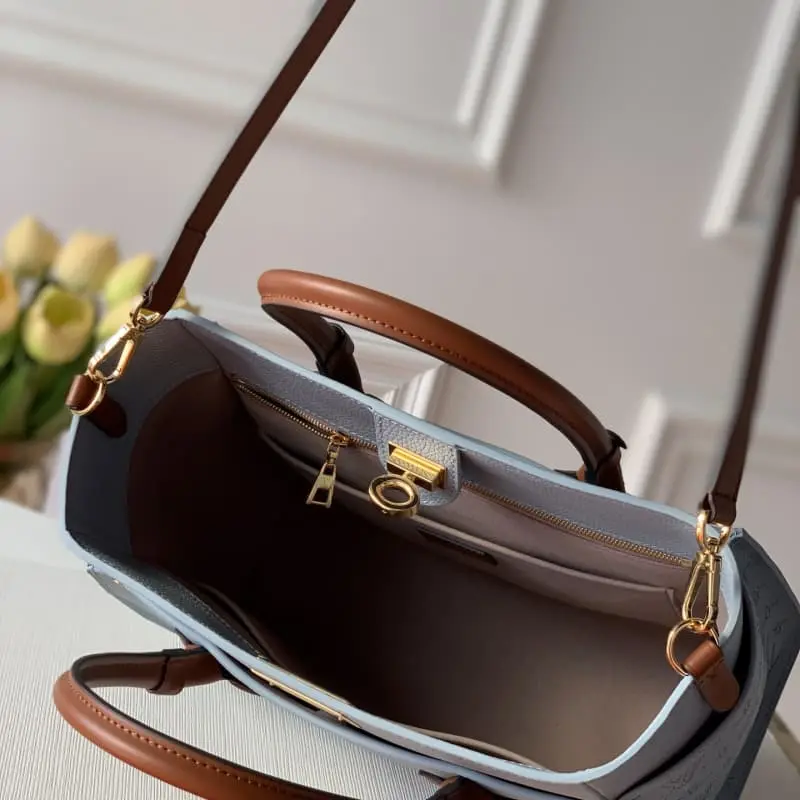 Handbag m56078 full leather On My Side handbag elegantly splices fine grain calfskin and classic Monogram canvas 55802 and cuts a large outer pocket with contrasting canvas to create double space for a handbag. The ample interior can easily accommodate work needs; crossbody adjustable shoulder strap full leather splicing side punching front lock bat bag smiley bag ?? travel immediately. Size: 30.5x 24.5x 14.0 cm