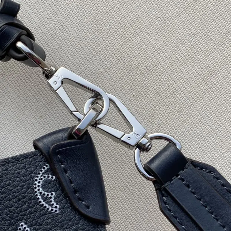 MURIA handbag M59554 midnight blue Muria Tote bag is made of soft perforated cowhide leather. The L* letters and Monogram flowers are painted with gradient strokes to show the new interest of Monogram pattern. The woven handle is convenient for elbow carrying. The detachable leather shoulder strap can be carried on the shoulder or crossbody, making the plane travel elegant. Size: 25x25x20cm!