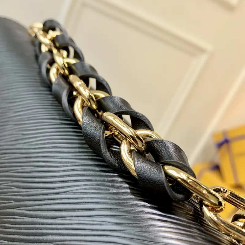 The M59896 black Twist medium handbag is made of the brand’s iconic Epi leather and embellished with a sculpture-like LV Twist lock that releases the dazzling luster of metal. The rough metal chain is paired with a detachable and adjustable leather shoulder strap to unlock more carrying methods. Size: 23 x 17 x 9.5 cm