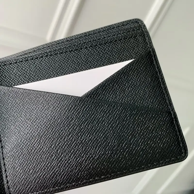 M60332 Black Water Ripple Short Wallet This fine and soft leather is the ideal material for a wallet. This compact yet practical wallet has multiple pockets and card slots and fits easily into any pocket. Size: 11.5X9cm.