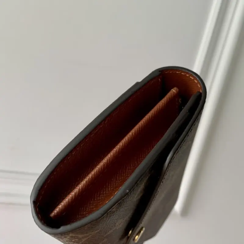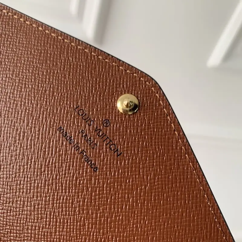 M60531 Gold Buckle Brown This envelope wallet is made of elegant Monogram canvas with a unique and sophisticated interior design featuring various pockets and credit card slots. 19x10cm.