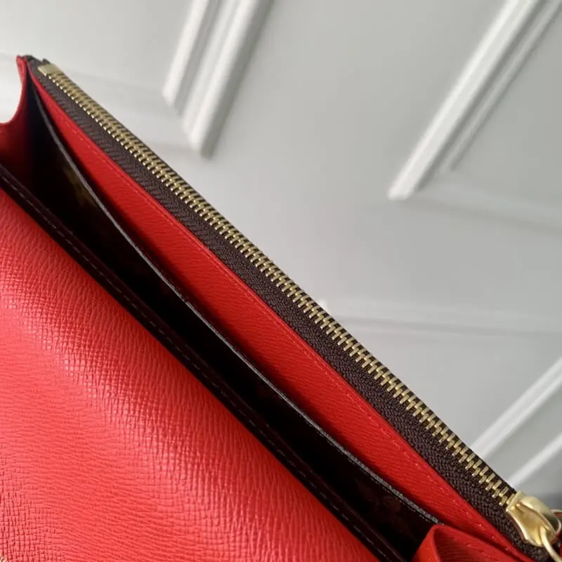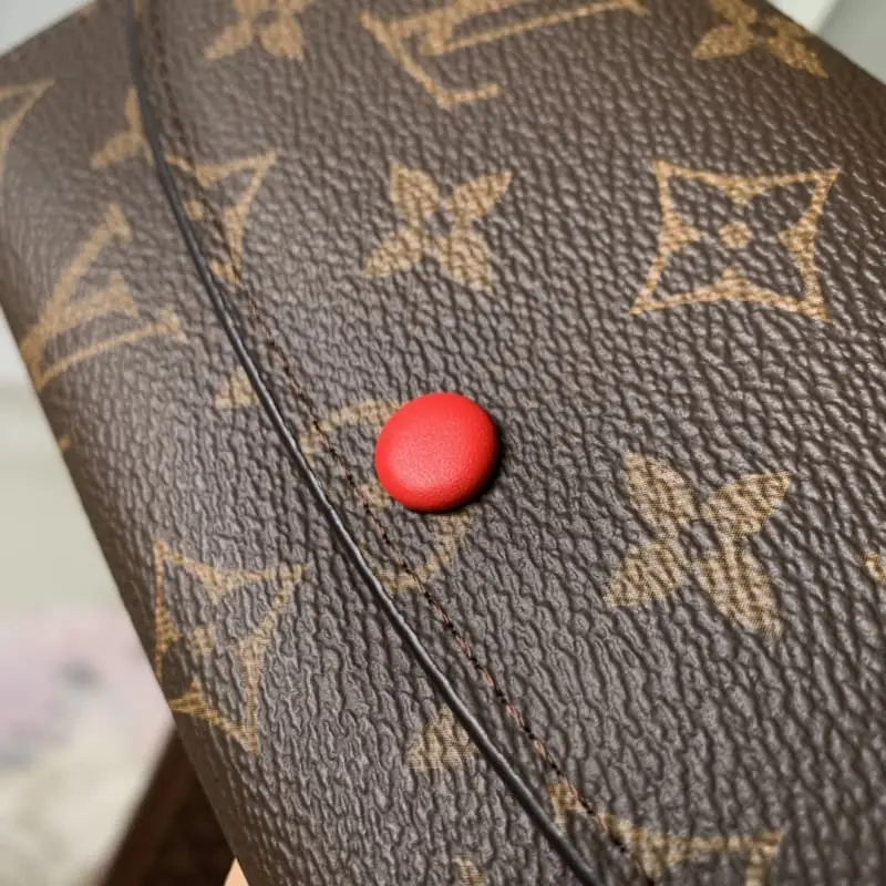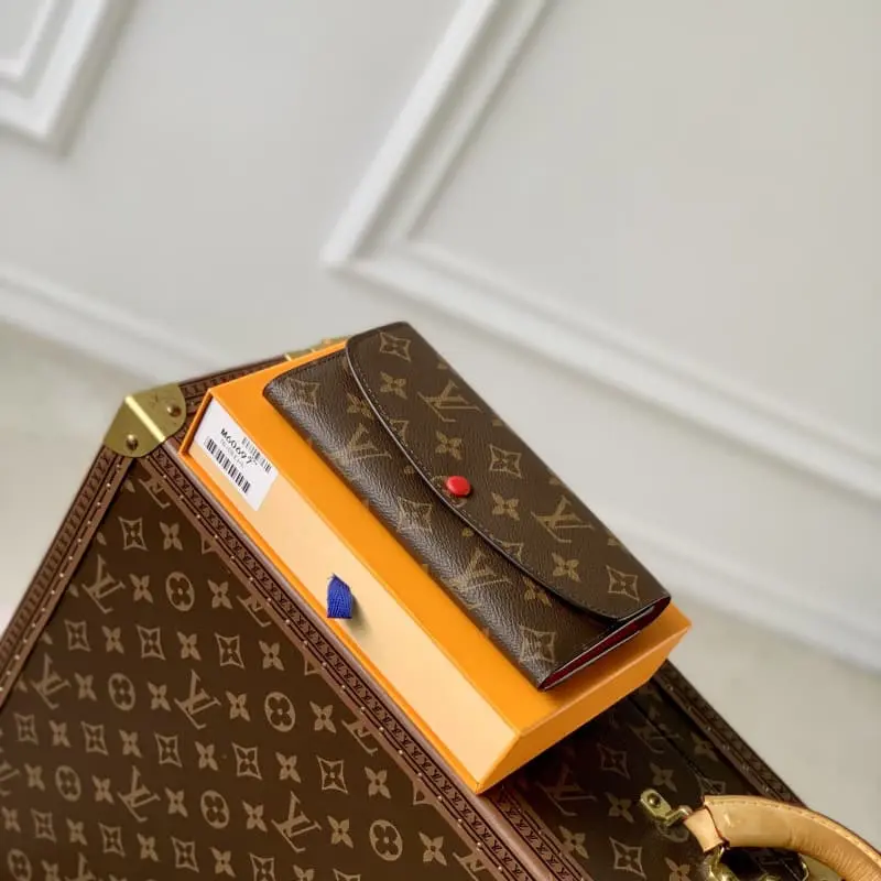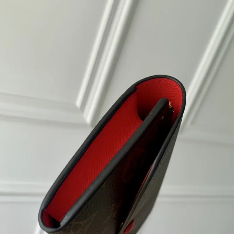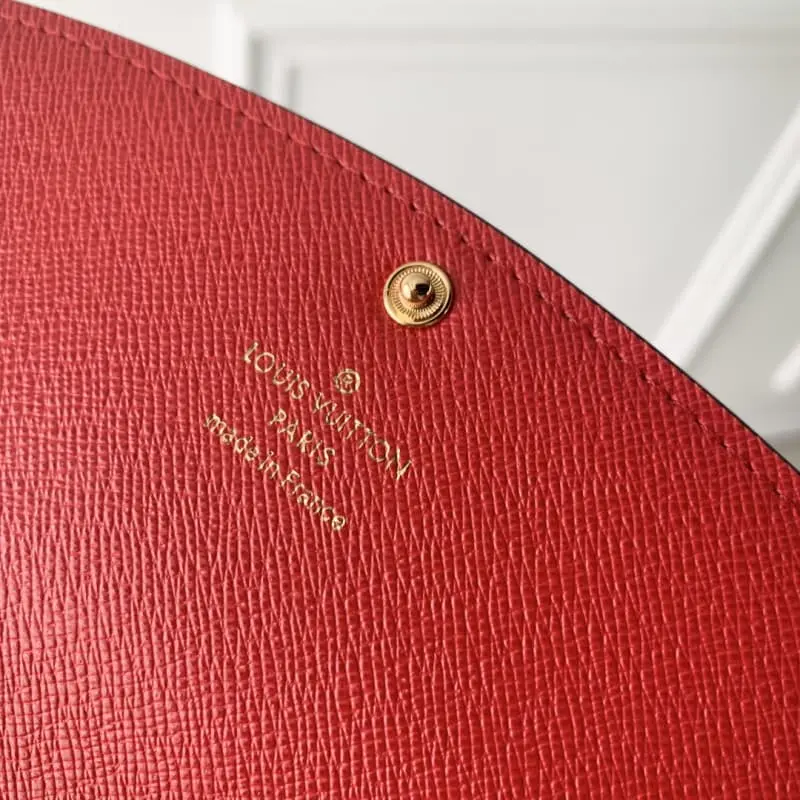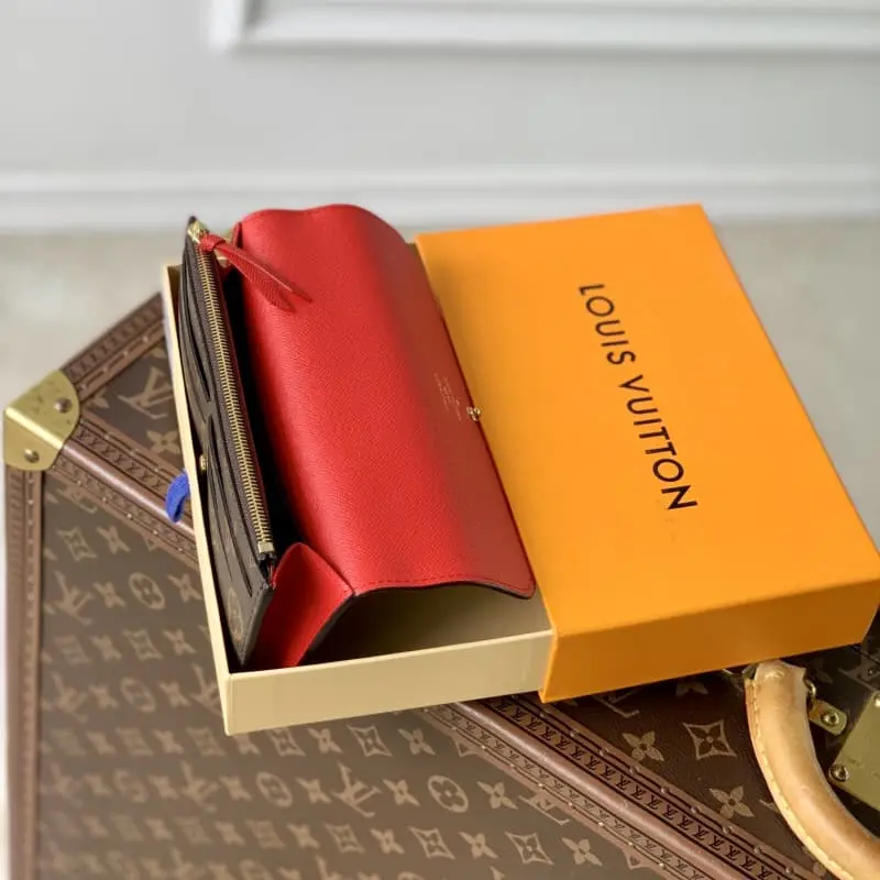 M60697 Red Emilie wallet Made of soft Monogram canvas with brightly colored lining Extremely elegant Multi-pocket design and eye-catching shape give it an irresistible charm Size: 19x10cm