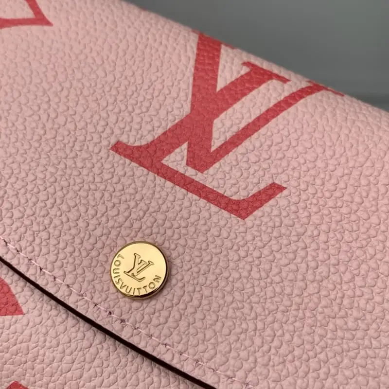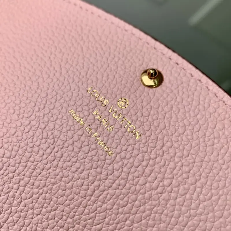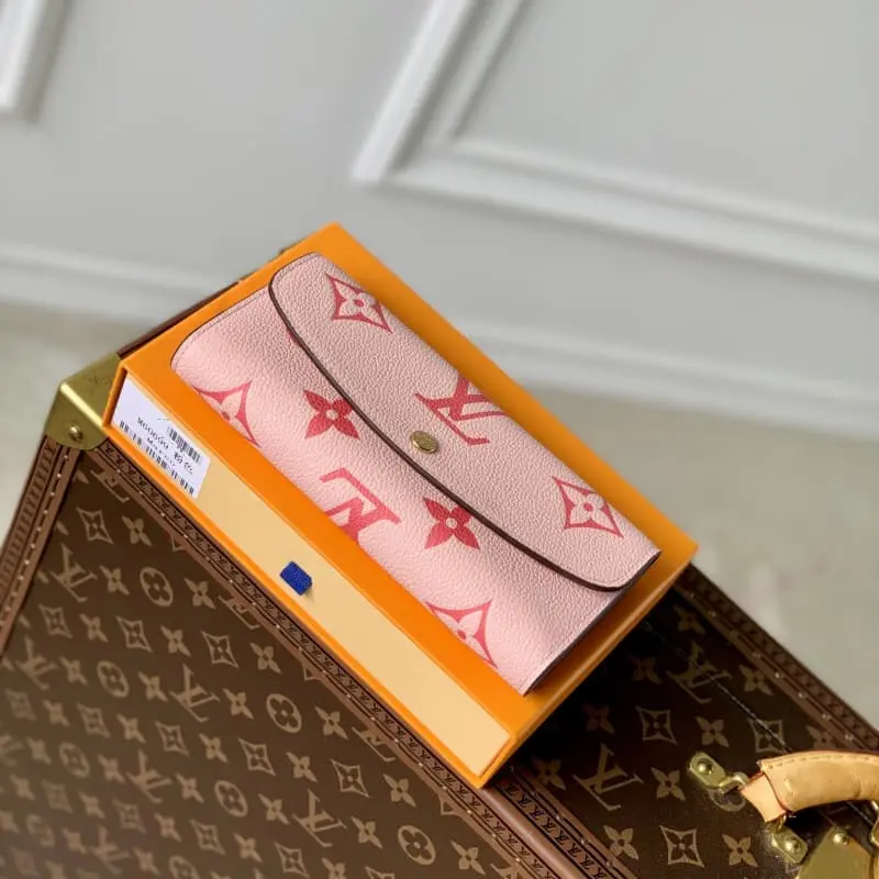 M60699 Pink long trifold wallet with multiple card slots! The wallet is made of soft Monogram leather with brightly colored lining. It is extremely elegant with multiple pockets and eye-catching shape, giving it an irresistible charm.