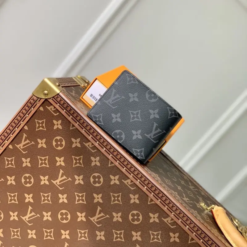 M61695 Black Flower MULTIPLE Wallet Made from the new iconic black and gray Monogram Eclipse canvas, the Multiple Wallet has an extremely practical internal design with many slots to easily store business cards, credit cards and banknotes. It is small in size and can be stuffed into a clothing pocket.