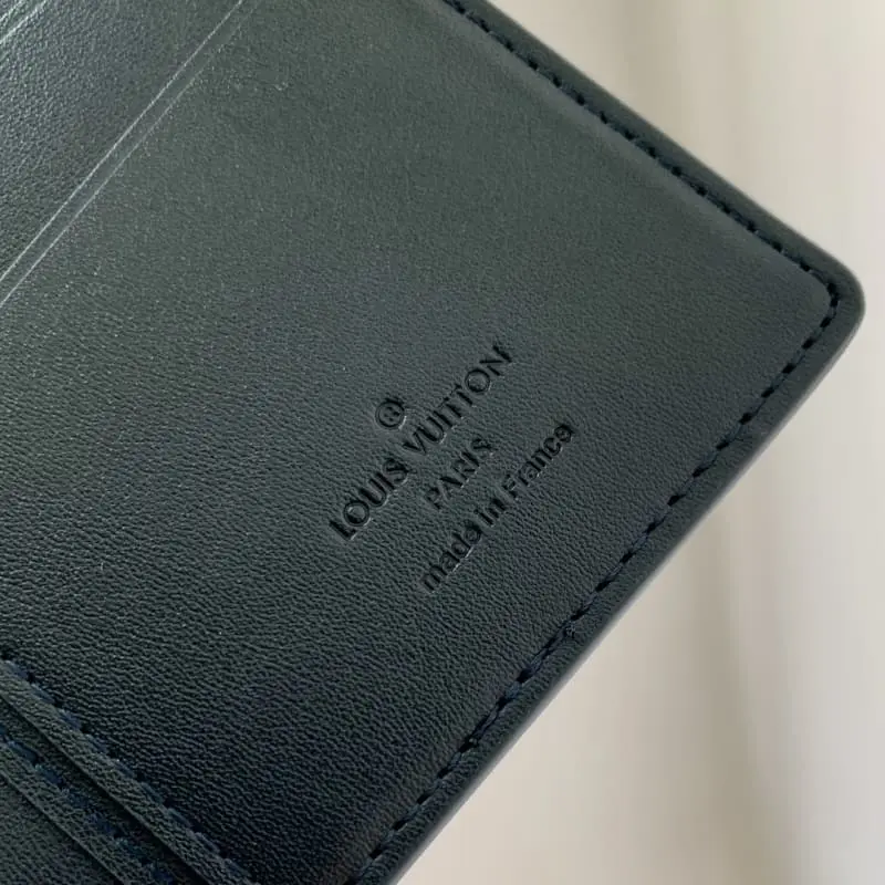 M61697 Elegant Blue is made of the new blue iconic blue Monogram Eclipse canvas. This tough style wallet is small in size and can be stuffed into the jacket chest pocket while easily storing various coins, credit cards and bills. Size: 19X10cm.