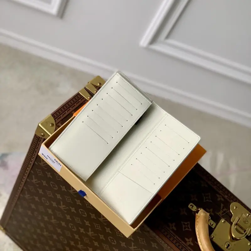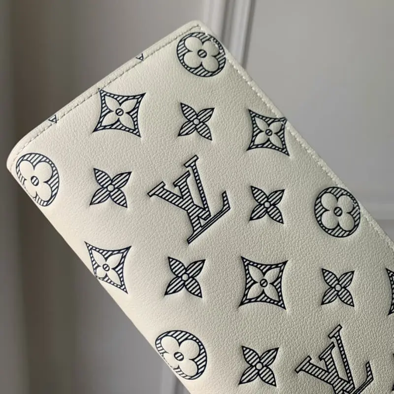 M61697 Elegant White is made of the new blue iconic blue Monogram Eclipse canvas. This tough style wallet is small enough to be stuffed into the jacket chest pocket and easily store various coins, credit cards and bills. Size: 19X10cm.