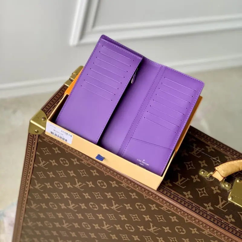 M69038 Embossed purple! The chip version of the Brazza wallet is made of soft Taurillon leather with embossed Monogram pattern. It has various card slots, pockets and a large zippered coin compartment. It has ample capacity and can be easily placed in most jacket pockets. Dimensions 10 x 19 x 2 cm (length x height x width)