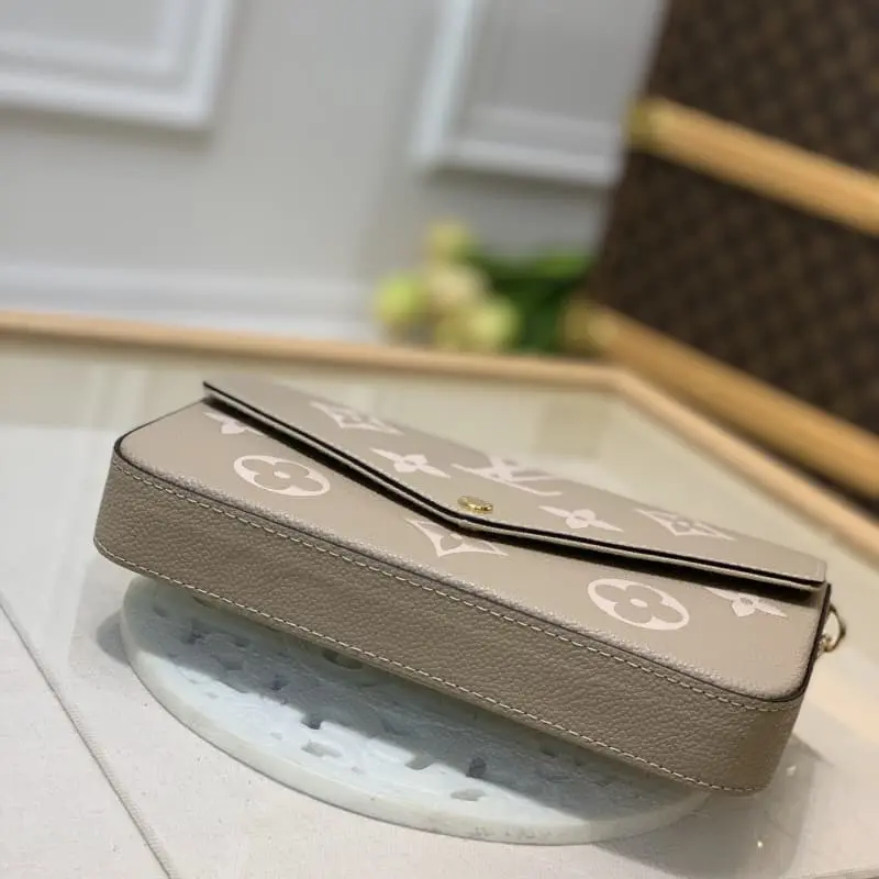 M69977 Apricot This Pochette F??licie chain bag is made of Monogram Empreinte leather with a Monogram print. Its envelope-style configuration includes a detachable inner pocket. Fasten the chain to complete the conversion between a clutch and a shoulder bag. Detailed features 21.0 x 12.0 x 3.0 cm (length x height x width) Monogram Empreinte embossed soft grain cowhide fabric lining metal parts detachable metal chain shoulder or crossbody snap closure large compartment inner patch pocket detachable zipper pocket detachable patch pocket with card compartment chain: detachable chain half length: 53.0 cm