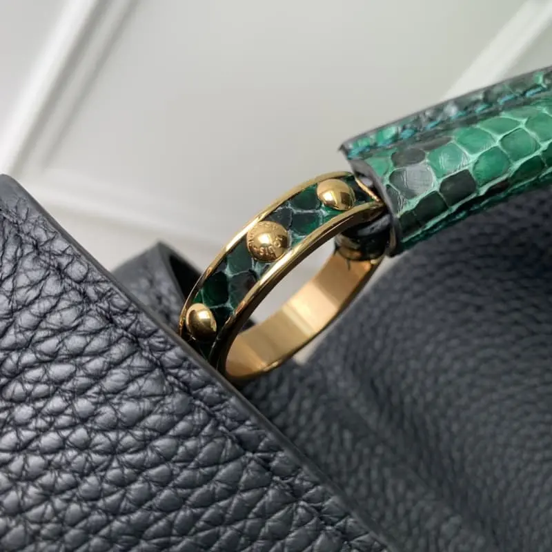 [Model M80931 81310. Black with green python small] Capucines small handbag French imported calfskin, shiny metal accessories, unique Capucines flap can be put inside the bag to display the letter logo, or turned out to show the Monogram Flower pattern size: 27x18x9 cm