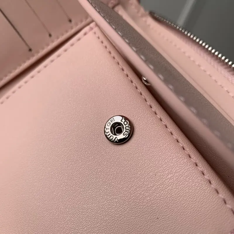 M81558 Pink The delicate Monogram pattern is perforated to create a “Zippy Compact Wallet” made of soft Mahina leather. The clean square signature design is paired with a round zipper wallet with a leather handle. The interior is equipped with a bill pocket, a coin flap pocket, and 4 card slots. Dimensions: 11.5 x 10.5 x 2 cm