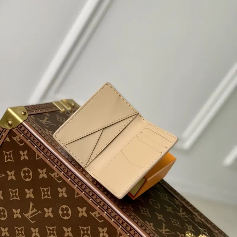 M81730 Apricot Men’s New Card Holder New LV Aerogram Pocket Wallet The selected calfskin is as soft as old aviation letterheads The metal LV letters mark the brand identity in a low-key manner Equipped with compartments and card slots to achieve a fusion of elegance and functionality. Can be matched with any LV Aerogram series handbag. Dimensions: 8 x 11 x 1 cm