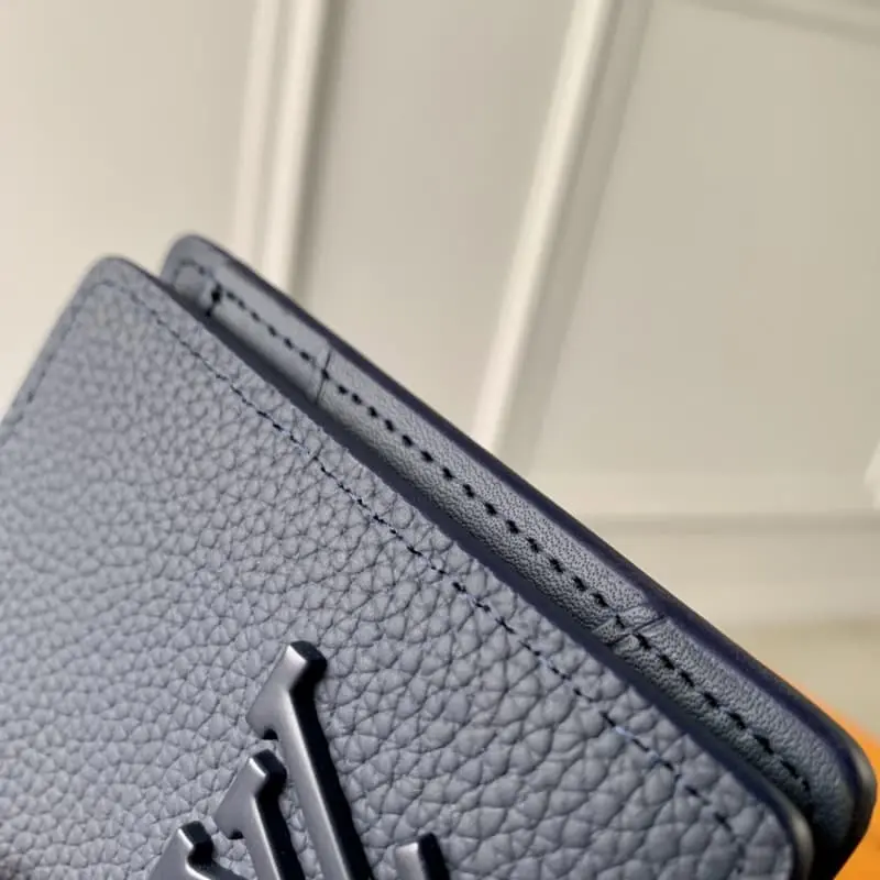 M81822 The “Portefeuille Multiple” is updated with Aerogram leather, which is the proud know-how of Lbag. The soft premium cowhide reminiscent of vintage airmail letters is dyed saffron yellow and embellished with the LV letters in a saffron color. It has multiple slots and compartments for cards, bills, and documents. It is a highly functional item suitable for daily use. Size: 11.5 x 9 x 1.5 cm