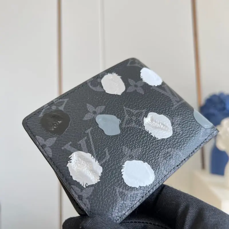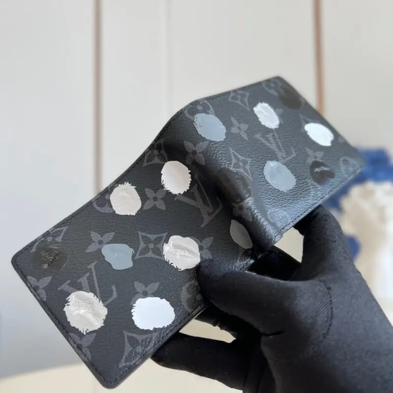 M81931 Japanese artist Yayoi Kusama has been promoting the evolution of avant-garde art since the 1960s. Her obsession with polka dots has become her visual business card. In the Lbag x Yayoi Kusama collaboration series, the LV x YK Multiple wallet uses complex silk-screen printing technology to create a three-dimensional effect. The artist’s hand-painted polka-dot pattern is reproduced on the Monogram Eclipse canvas, and the artistic expression is completed through functional design. Size: 11.5x9x1.5cm