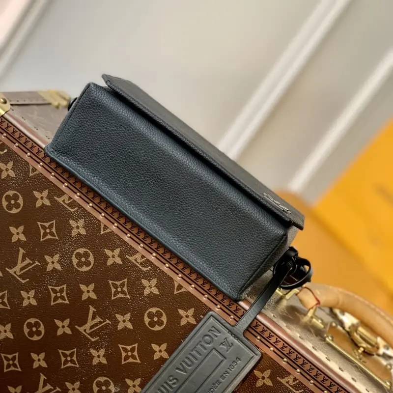 M82085 Black full leather men’s bag Messenger bag series Flap mini handbag made of cow leather. The inspiration of the cut corners comes from the LV Aerogram series’s creation of old French airline letterheads. LV letter mark details Magnetic buckle flap opening Ample compartments Adjustable shoulder strap for easy carrying. Detailed features 17.3 x 12 x 7 cm (length x height x width)