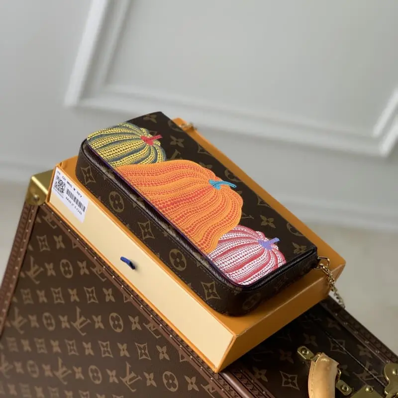 M82108. Lbag ?? Yayoi Kusama “LV ?? YK Pochette Felicy” is a new collection of outstanding works suitable for the collaboration, which exudes creative charm. The widely loved and beloved Japanese artist Yayoi Kusama uses pumpkins as a symbol of warmth and optimism as the main theme of her paintings and sculptures. Inspired by that pumpkin, 3 colorful “pumpkin” patterns are printed on the Monogram canvas. It is a stylish and practical clutch. Suitable for contactless payment. Comes with a detachable card holder. Size: 21??12??3