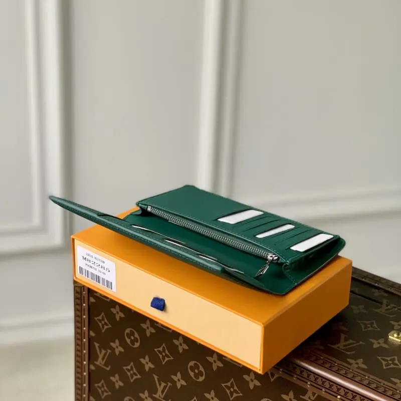 M82285 Reinterpret the “Portefeuille Brazza NM” with a fresh “LV AEROGRAM” version that exudes subtle elegance. Special processing on black calfskin achieves luxurious grain. The metal LV signature adds a discreet touch. The compartments for cash, documents, coins and the functional items equipped with 17 card slots also match the bags of the “LV AEROGRAM” series. Dimensions: 10 x 19 x 2 cm