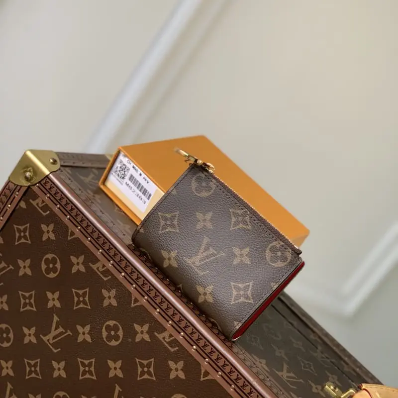 M82381 Red Made of Monogram canvas with colorful leather lining “Portefeuil Lisa”. The compact wallet with a coin pocket with a handle LV ring is also attractive in size suitable for small bags and clutches. There are bill compartments, 2 flat pockets and 4 card slots on the inside. Dimensions: 9??11.5??1.5
