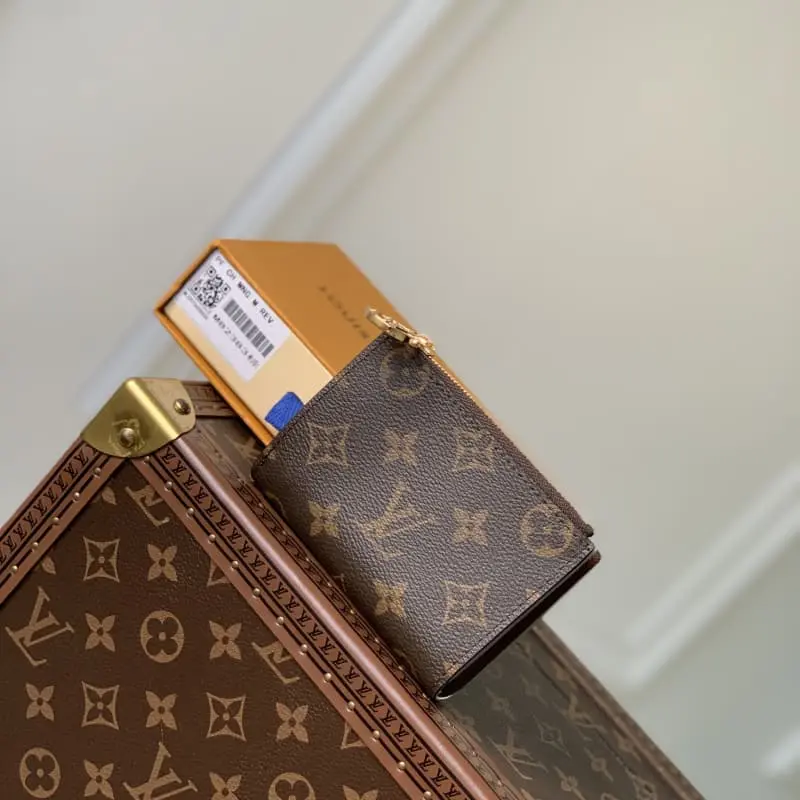 M82383 Brown Made of Monogram canvas with colorful leather lining, “Portefeuil Lisa”. The compact wallet with a coin pocket with a handle LV ring is also attractive in size for small bags and clutches. Inside, there are a bill compartment, 2 flat pockets, and 4 card slots. Dimensions: 9??11.5??1.5