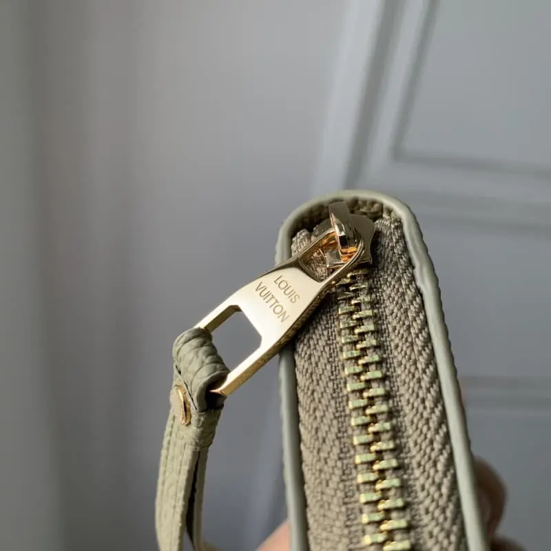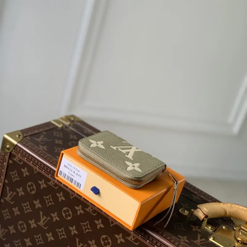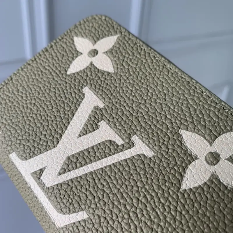 M82448 Grass Green (Silkscreen) “Zippy Coin Purse” made of beautifully textured Monogram Unplant leather. Printing and embossing embellish the Monogram pattern in elegant 2-tone earth tones. In addition to two compartments with large interlayers, there are two flat pockets and multiple card slots on the inside. Dimensions: 11 ?? 8.5 ?? 2cm