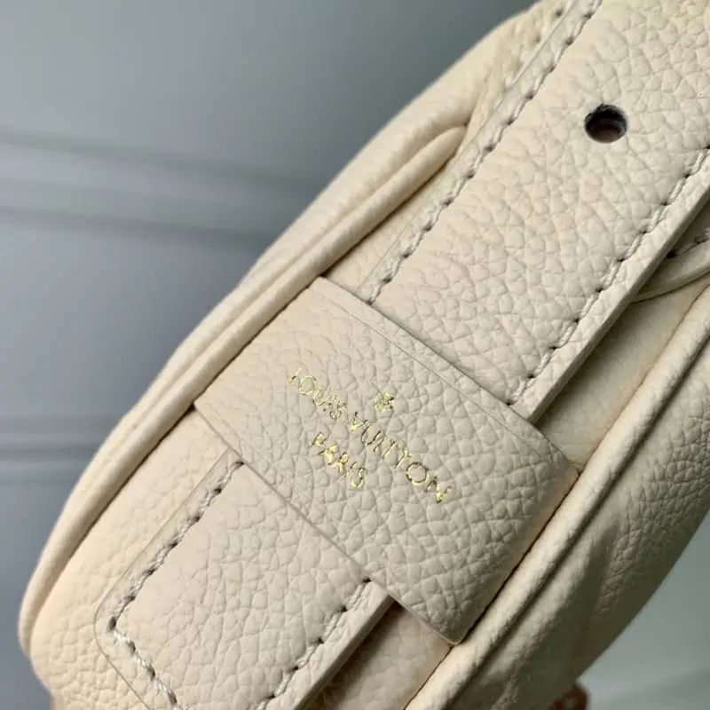 M82519 White Mini Moon in soft monochromatic Amplande leather. A refined and compact micro shoulder bag. The engraved single-sided pattern harmonizes with jewel-like details such as the oversized LV circular signature hanging on the zipper. A must-have for everyday or evening wear. A piece that can be worn on the shoulder or arm or as a handbag thanks to the adjustable strap. 20.5 x 11 x 5 cm (length x height x width)