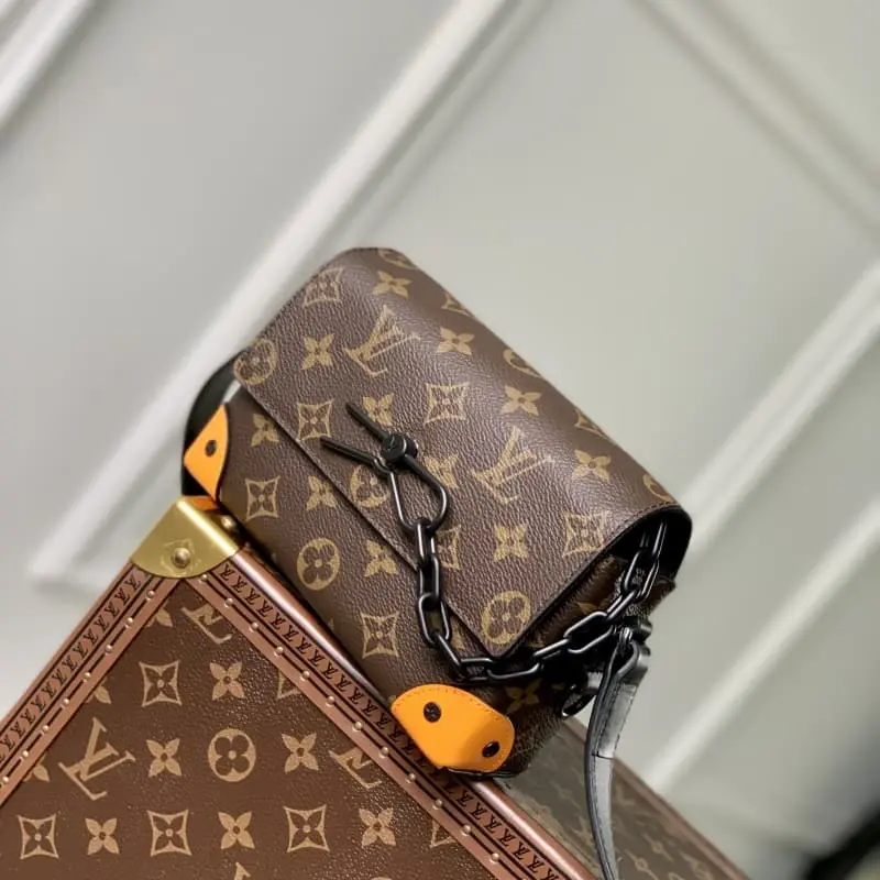 M82534 (M81783) Steamer Mini Bag is based on the design concept of Lbag’s classic Steamer Bag. It combines Monogram Macassar canvas and leather reinforced corners with corner rivets and Steamer style chain and other metal parts. The zippered inner pocket can store valuables. 18.0 x 11.0 x 6.5 cm (length x height x width)