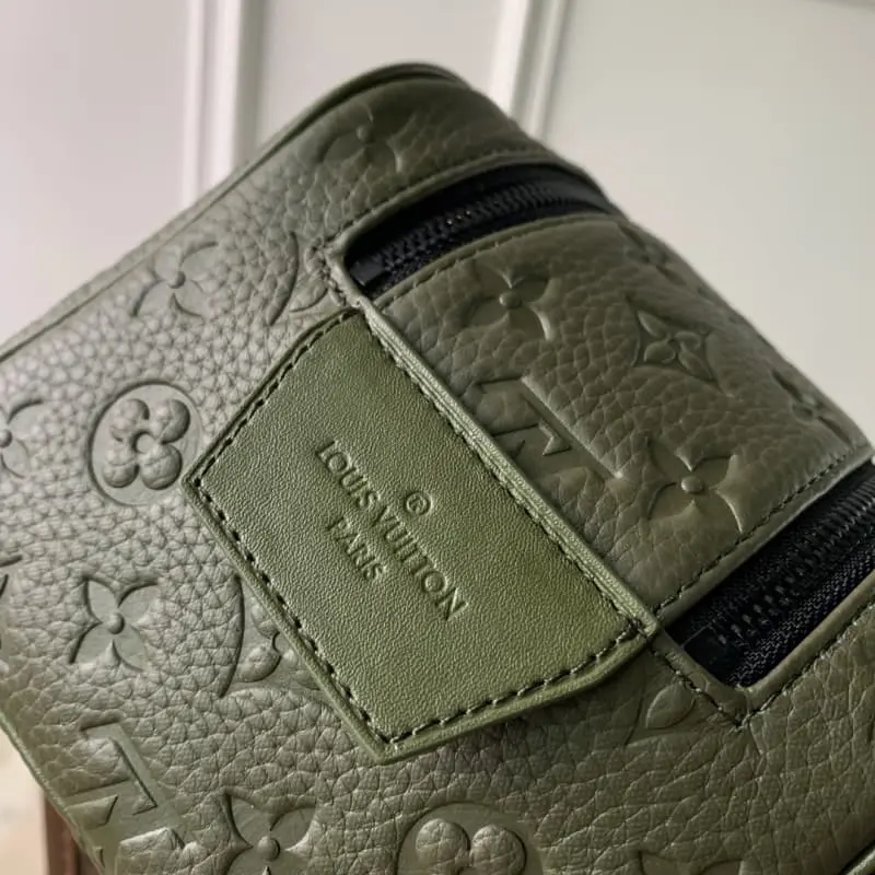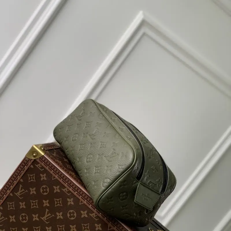 M82576 Embossed Green This color is made of top-grain cowhide leather, and the Dopp Kit toiletry bag is made of grained Taurillon leather with embossed Monogram pattern. Combined with the double zipper wide mouth design and washable lining, it can properly store and carry toiletries. The stable handle is convenient for hanging on the bathroom hook. Dimensions: 28 x 15 x 16.5 cm