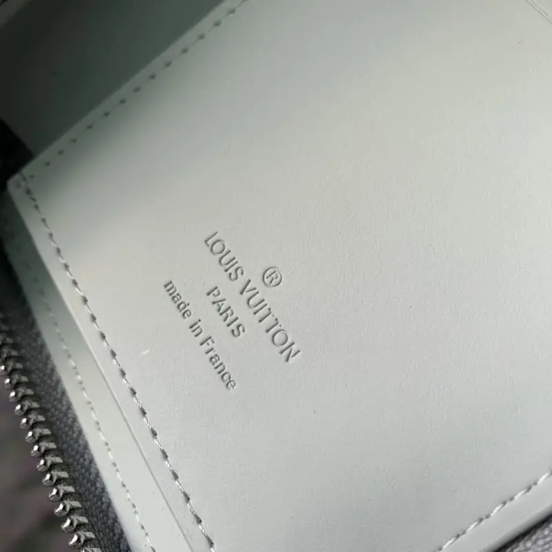 M82597 This large Zippy Vertical wallet for men is made of Taurillon leather with a unique natural grain. The LV initials and the embossed monogram flower subtly enhance the leather. This model has several compartments and slots for cards and a zippered pocket for currency. Dimensions: 10??20??2