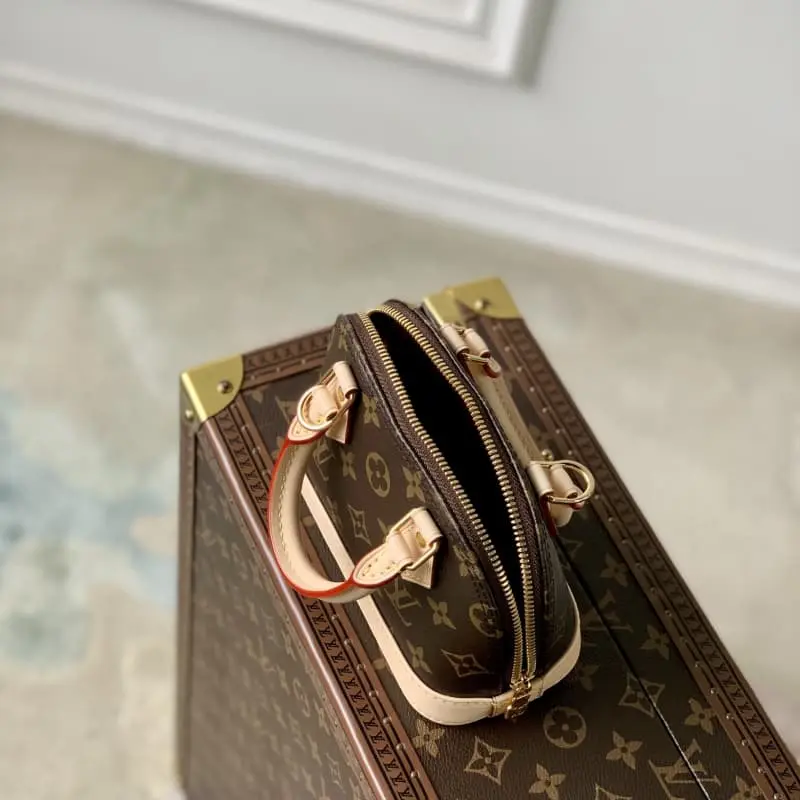 M82717 Monogram [Alma Nano Shell Bag] The Nano Alma, a miniature version of the iconic Alma bag. Lbag’s signature Monogram canvas material is coordinated with the natural leather trim. An exquisitely crafted item that combines traditional charm and modern functionality. Opening the double zipper reveals an interior design with surprisingly ample storage space. Two leather handles and an adjustable, detachable shoulder strap allow for a variety of styles. Dimensions: 18 x 12 x 8 cm (length x height x width)