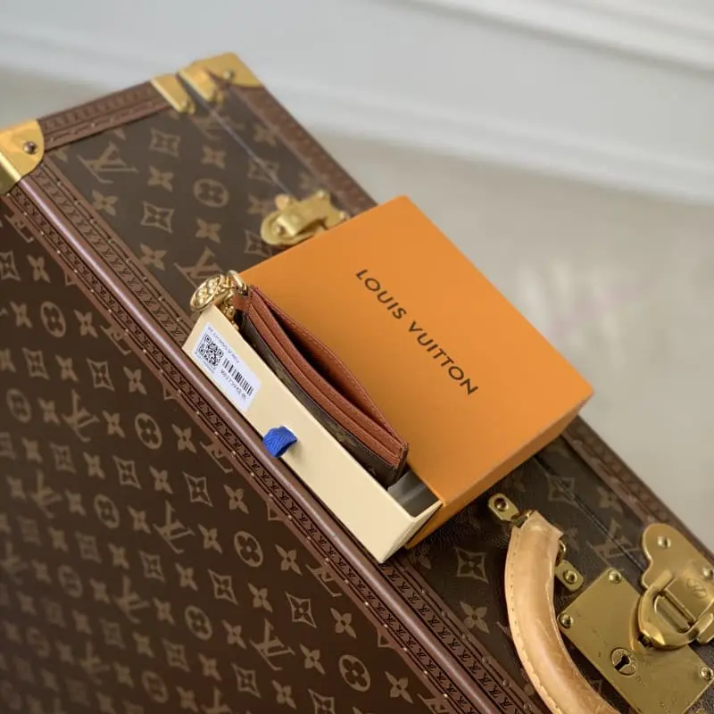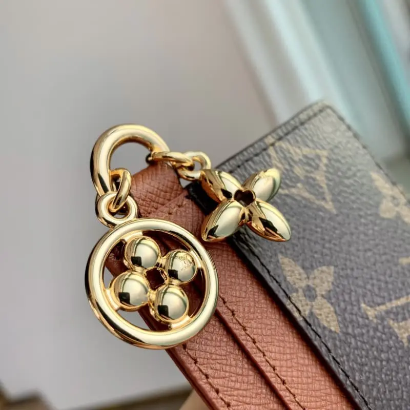 M82739 Monogram coated canvas and cow leather are used for the large compartments. The card compartments are evenly spaced on both sides. The Monogram floral decoration exudes a lustrous glow, making it a great gift. Dimensions: 10.2 x 7.3 x 0.3 cm