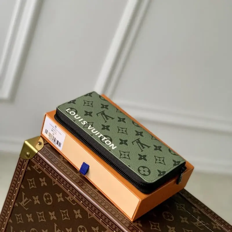 M82799 Green Zippy wallet with Monogram canvas and iconic Monogram pattern lining. Vertical Lbag logo embellished on it. Card compartment and banknote compartment provide ample space. Size: 20??10??2 cm