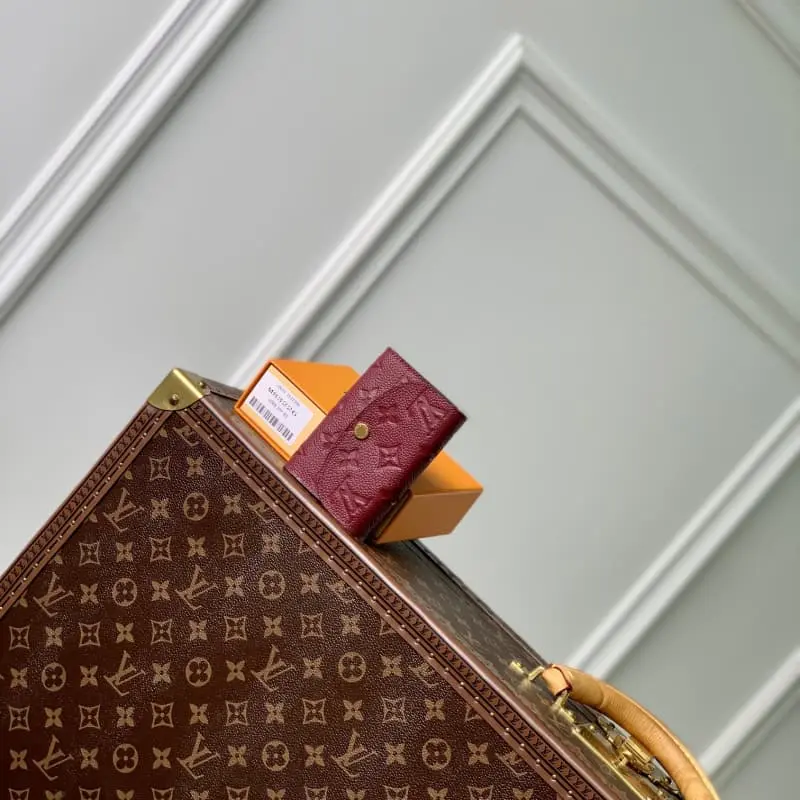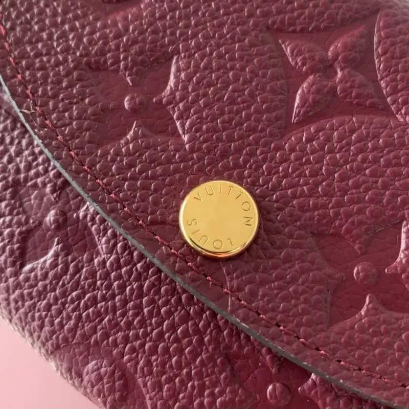 M82927 Red This Rosalie coin purse is made of Monogram Empreinte soft grain cowhide leather. It opens with a rounded flap. The small configuration has a zipper coin pocket, a patch pocket and a card compartment. The Lbag logo snap button ensures a secure opening and closing. Dimensions: 11 x 8 x 2.5 cm