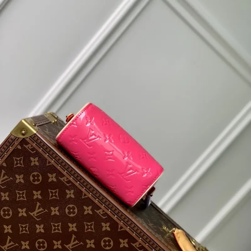 M83000 Rose Red This Nano Speedy handbag is made of Monogram Vernis pastel-colored patent leather and is a mini version of the brand’s most famous travel bag. The bright patent leather is embossed with the Monogram pattern and is paired with a natural leather top handle and a detachable gold chain with a charm. It is the perfect size for a mobile phone and a small wallet. 16 x 10 x 7.5 cm (length x height x width)