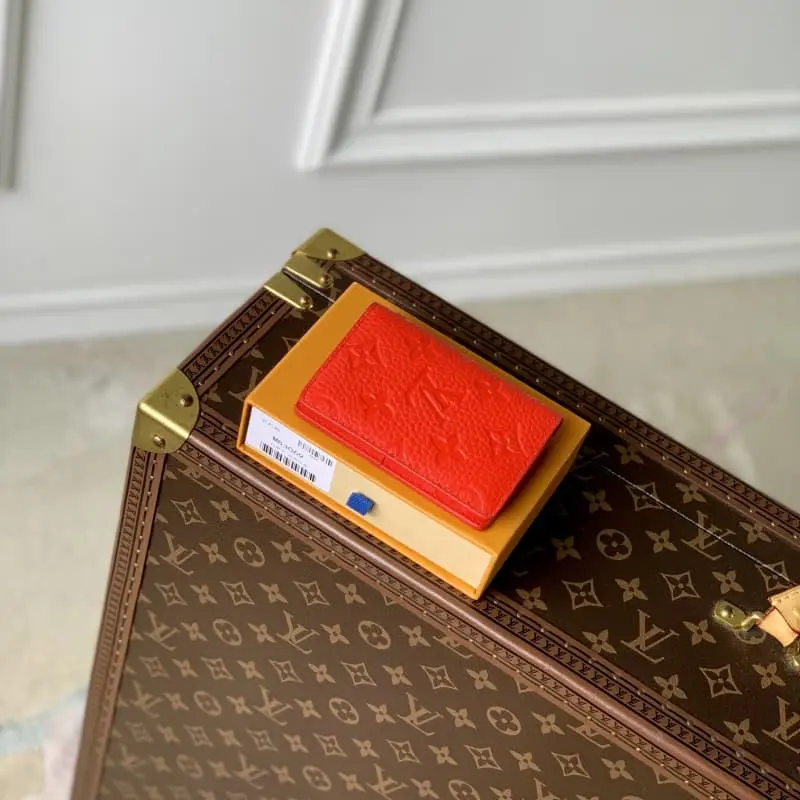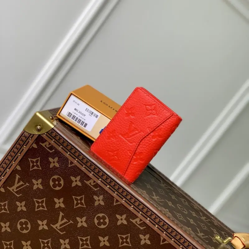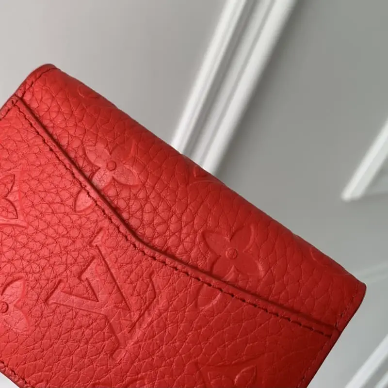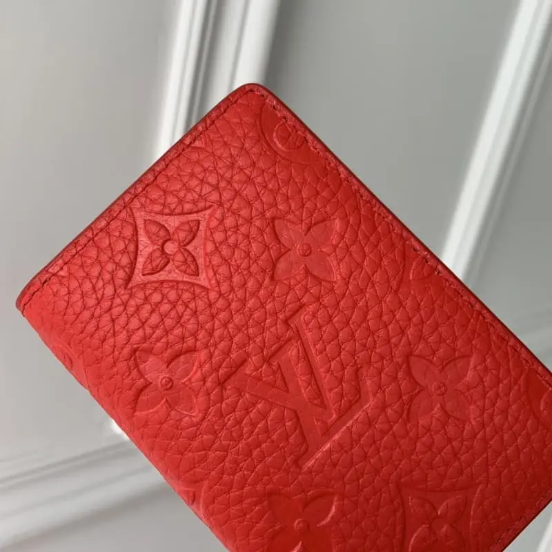 M83069 Red! Chip version pocket wallet made of full-grain Taurillon leather with subtle embossing of LV initials and Monogram flowers. Compact design with inner and outer pockets for easy access to credit cards or transportation cards. Details 7.5 x 11.1 x 1 cm (length x height x width)