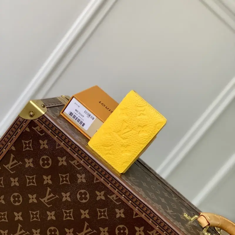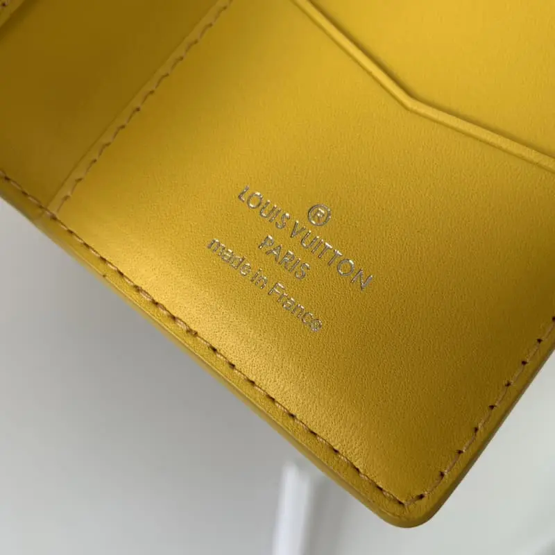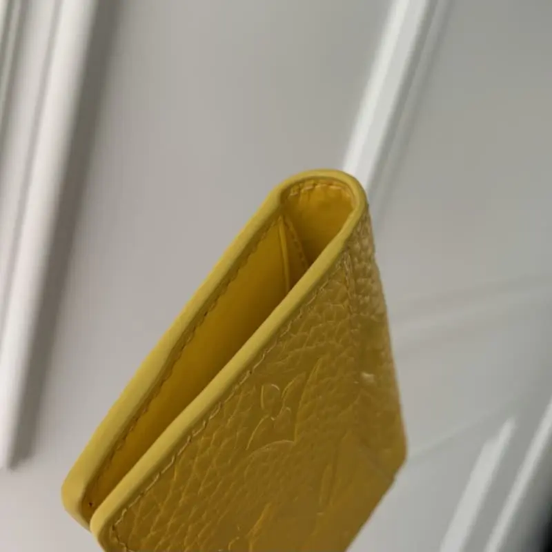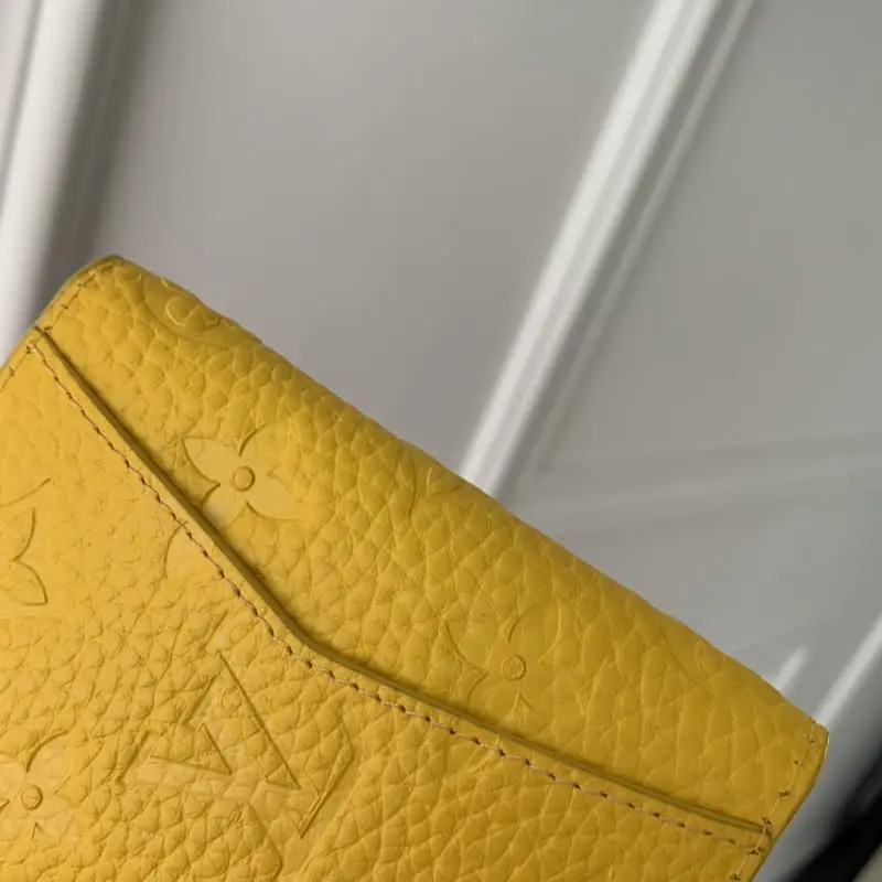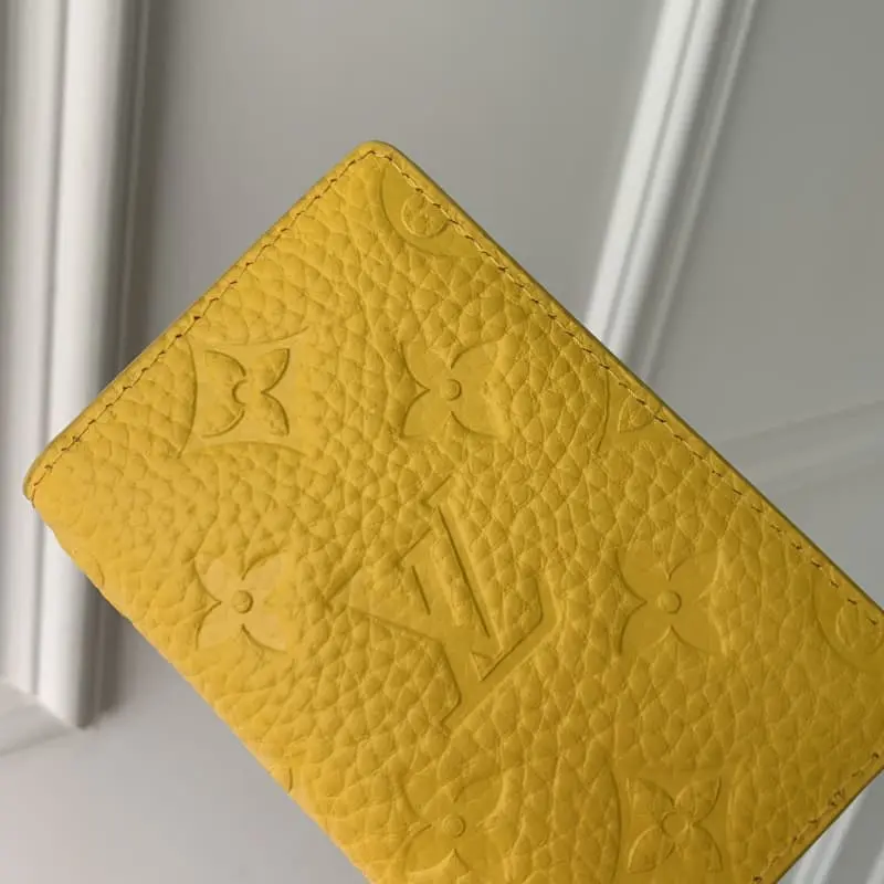 M83069 Embossed yellow! Chip version pocket wallet made of full-grain Taurillon leather with subtle embossing of LV letters and Monogram flowers. The exquisite structure has an inner pocket and an outer pocket for easy access to credit cards or transportation cards. Detailed features 7.5 x 11.1 x 1 cm (length x height x width)
