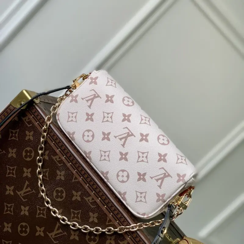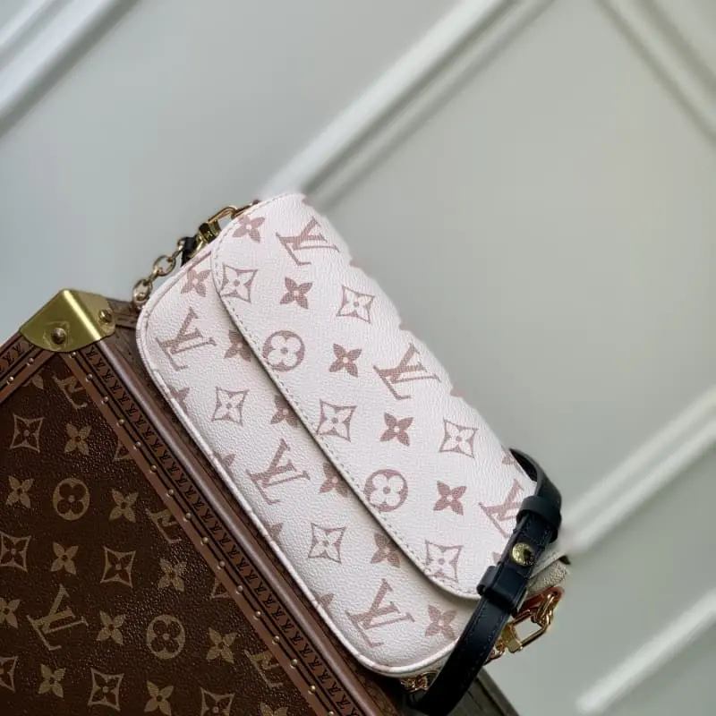 M83091 81911 White Flower Wallet On Chain Ivy handbag is made of Monogram canvas and is inspired by the Sac Recoleta handbag of the 2000s. The card compartment and zippered inner pocket can hold daily necessities. The chain and adjustable leather shoulder strap can be detached to achieve long or short shoulder and crossbody options. Size: 23.5 x 12 x 4.3 cm