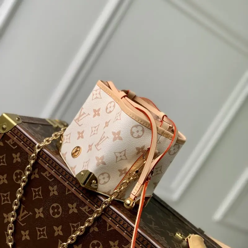 M83227 White Flower [NOE PURSE Handbag] Mini Bucket Bag Shaomai Bag Series Zjs jh Online Only Handbag M82885 Yellow Flower (Shaomai Bag) A modern and sophisticated Noe Purse presented in Monogram Reverse canvas material. A special item made by designer Nicola Jaskier to commemorate a fashion show held in Korea. A compact design reminiscent of the “Fukubukuro”, a traditional Korean pocket that symbolizes blessing. Detailed features with the inherent sensibility of the house, such as the LV circle and the trunk-inspired metal corners. A luxurious bag suitable for daily styling and evening wear. As a limited edition product that can only be purchased online now. Size: 11.5 x 11.5 x 11.5 cm
