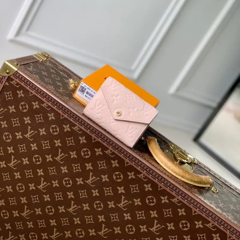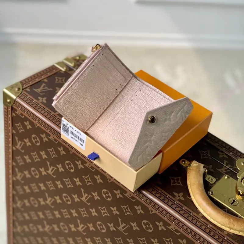 M83271 Pink “Portefeuille Victorine” reinterpreted in soft Monogram Unplant leather. The iconic Monogram pattern is applied casually with embossing. The Envirop??-type flap opens and closes the small wallet with a clasp engraved with the “Lbag” signature. The interior is equipped with a pocket for banknotes and coins and 6 card slots. 12 x 9.5 x 1.5 cm