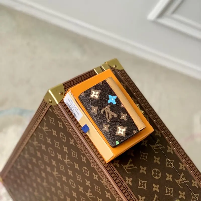 M83337 Black (Tyler Collaboration) This pocket wallet combines Monogram Craggy canvas and cowhide leather trim to show Tyler’s playful interpretation of the Monogram pattern. The compact structure has a card slot, inner pocket and outer patch pocket and can easily fit in most pockets. Dimensions: 7.5 x 11.1 x 1 cm