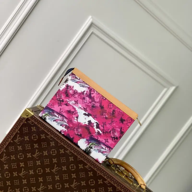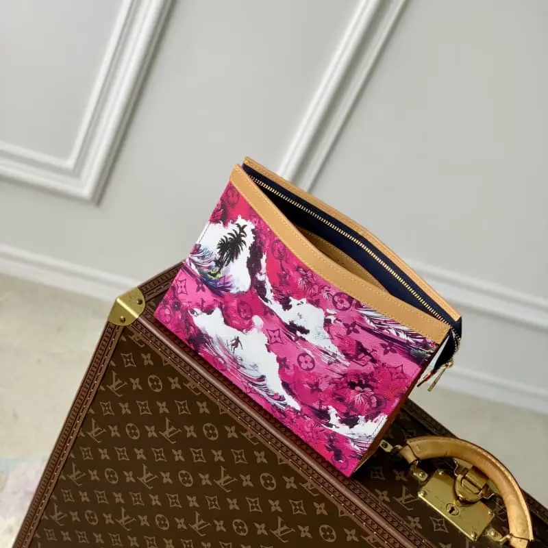M83465 Purple Virgil Abloh renews the Pochette Voyage handbag design with a skateboard coconut tree theme, and makes the ethereal LV logo appear on the Monogram canvas background. Pockets and card slots for orderly storage. Size: 27.0 x 21.0 x 3.0 cm