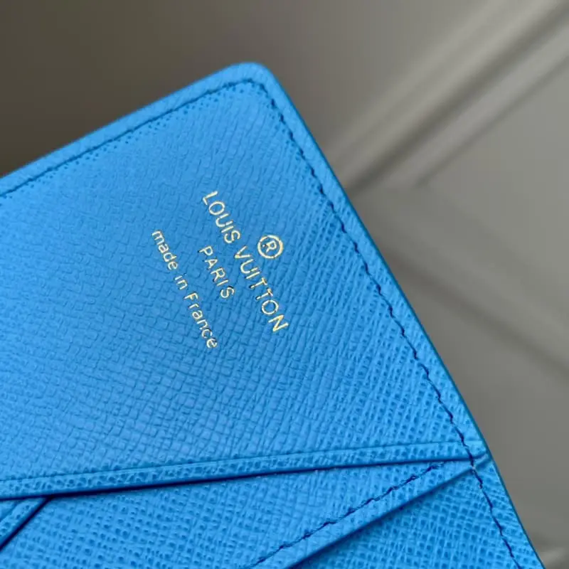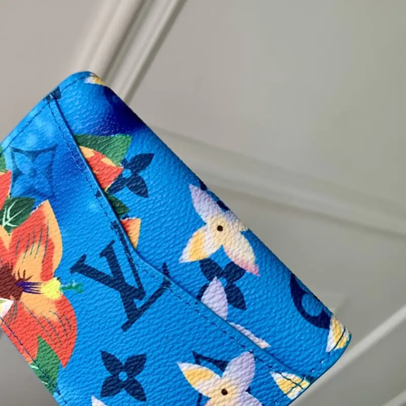 M83498 Blue This pocket wallet is made of Monogram Surfin coated canvas. The colorful pattern with tropical elements and classic brand logos injects retro style into the iconic items. The compact structure has a card slot, inner pocket and convenient outer pocket, and it can be easily placed in most pockets. 7.5 x 11.1 x 1 cm (length x height x width)