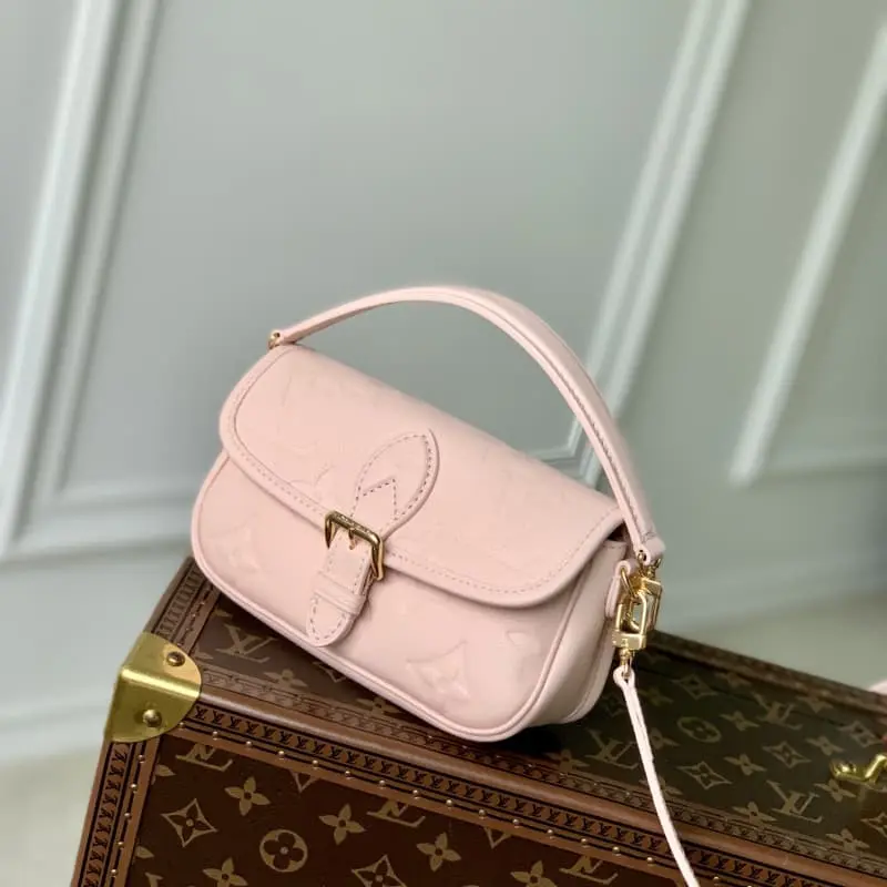 M83566 Pink Nano Diane handbag uses Monogram Empreinte leather to condense the classic configuration of the Diane handbag, reproducing the prototype details such as the rounded flap and belt-style closure. Ample space to store mobile phones and daily necessities. The detachable handle and detachable and adjustable shoulder strap enable flexible carrying, suitable for day and night occasions. 19 x 10.5 x 6 cm (length x height x width)