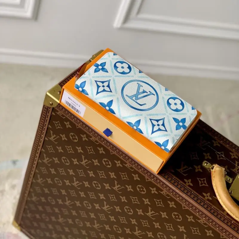 M83624 Blue color The “Gypti Wallet” on canvas reappears in the “LV by the Pool” series. The canvas is printed with a colorful monogram that evokes the Mediterranean. Yes. The signature LV circle in the center exudes a sense of presence. This iconic wallet has a round zipper and a functional design. The interior has multiple pockets and compartments. 19.5 x 10.5 x 2.5 cm (width x height x dimensions)