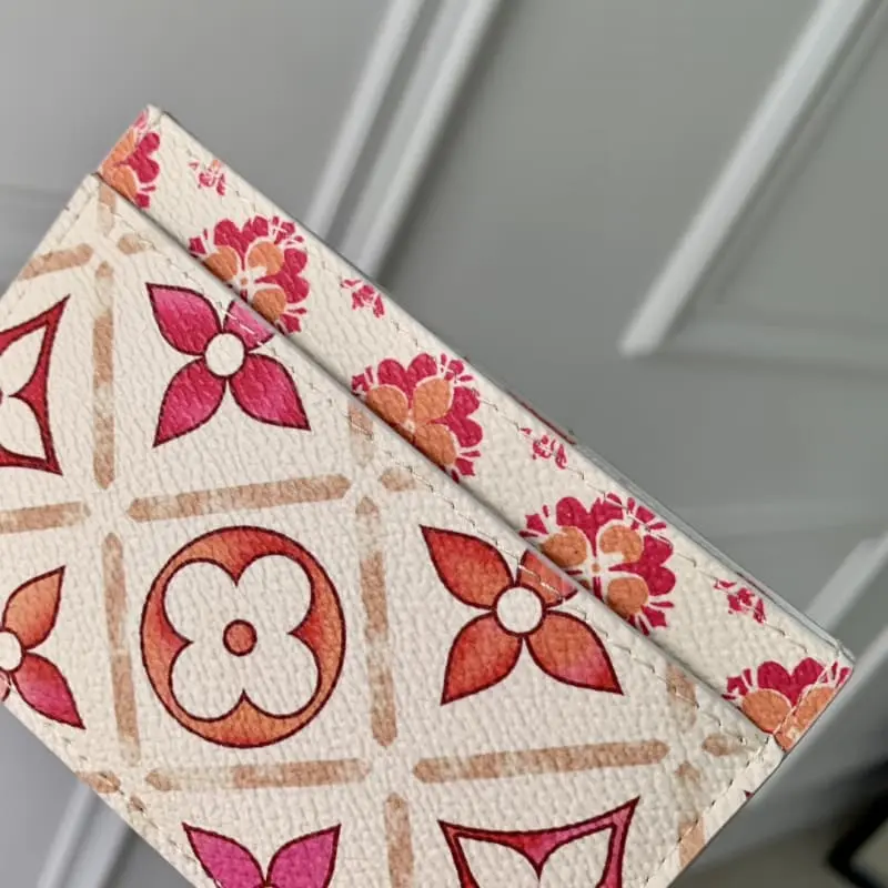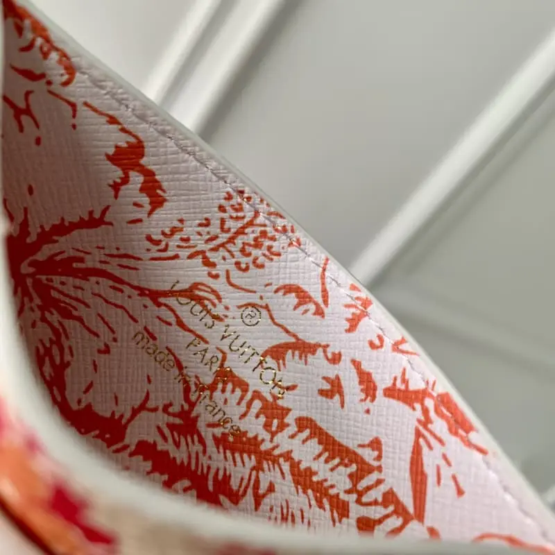 M83625 Red This card holder is from the LV By the Pool collection. It is made of coated canvas and features a Monogram Tiles pattern with a large LV Circle logo, exuding a romantic Mediterranean feel. It has two side card compartments and a large central card compartment. The gift box packaging for this product may be adjusted based on stock availability and may differ from the packaging style shown on this product page. Please refer to the actual gift box packaging style received. 11 x 7 x 0.5 cm (length x height x width)