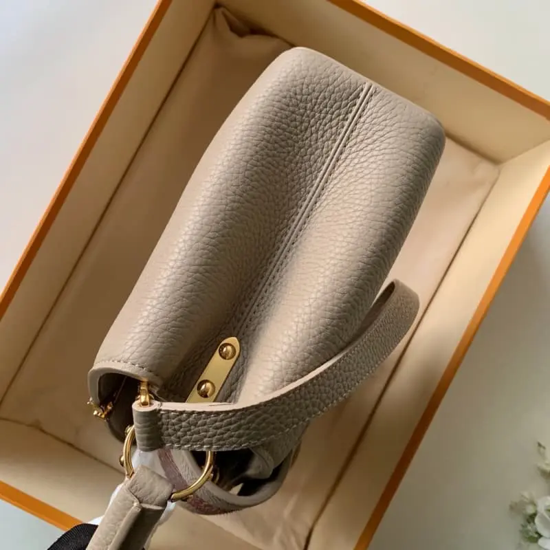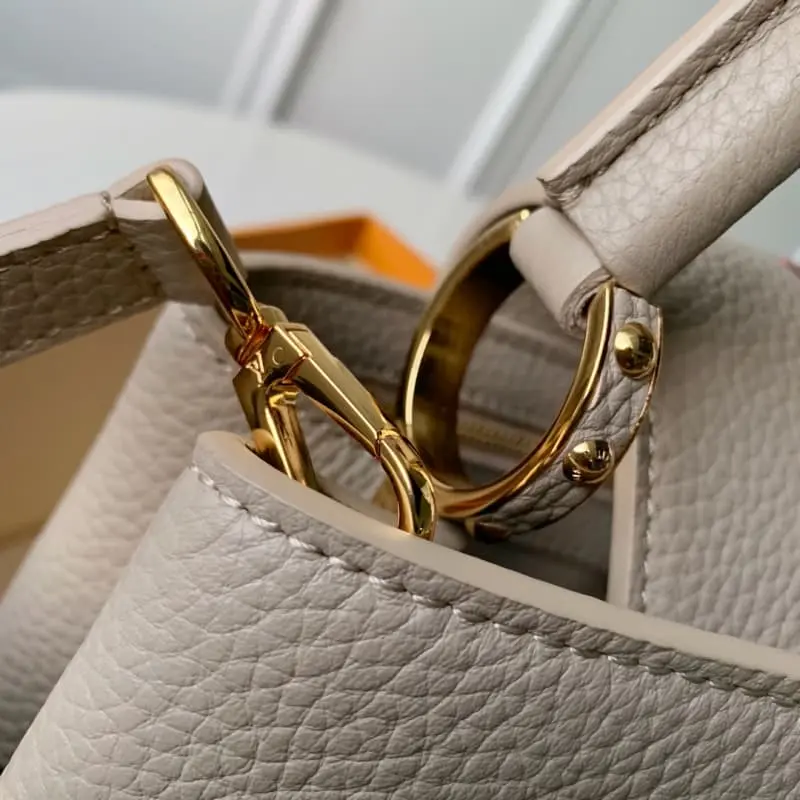 New! Top original M90198 This Capucines Medium Handbag is a perfect match for all styles from classic to avant-garde with its stylish mini size and trendy bright colors. The Capucines Medium Handbag features a shiny colorful finish and a removable long strap for casual shoulder or crossbody wear. size 31x21x11cm