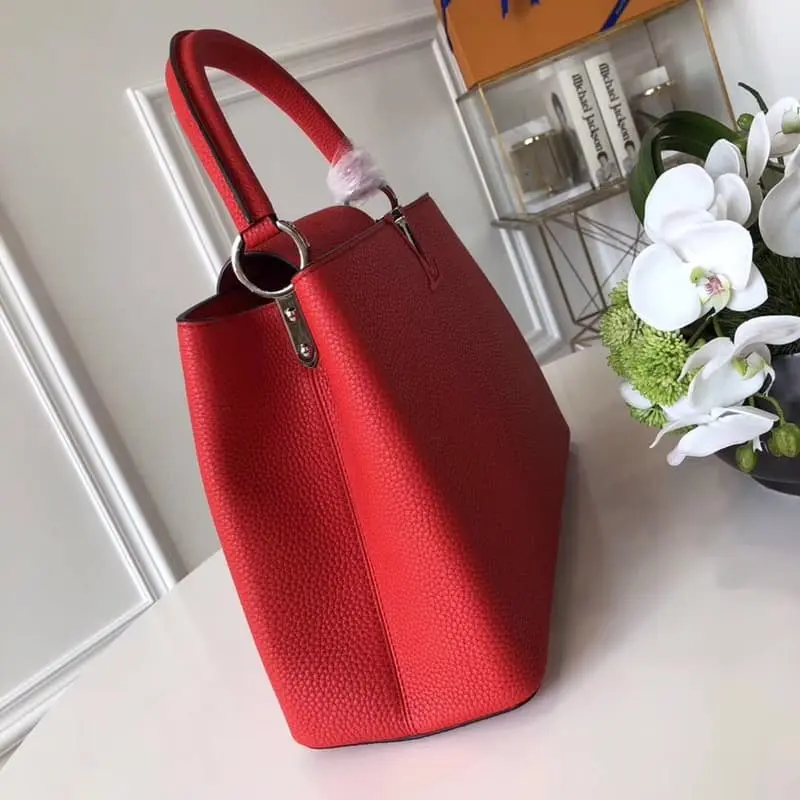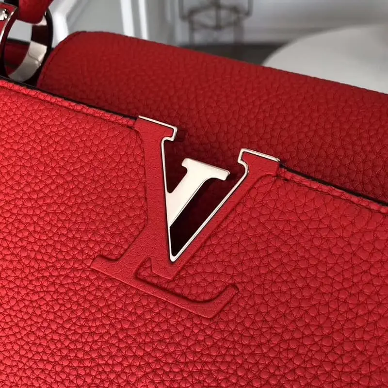 M94631 Capucines Medium Handbag is now available. The Capucines Medium Handbag is a stylish mini size and trendy bright colors that perfectly match various styles from classic to avant-garde. This handbag features shiny palladium decoration and is suitable for casual shoulder carry. Size: 36 x 23 x 14 cm.