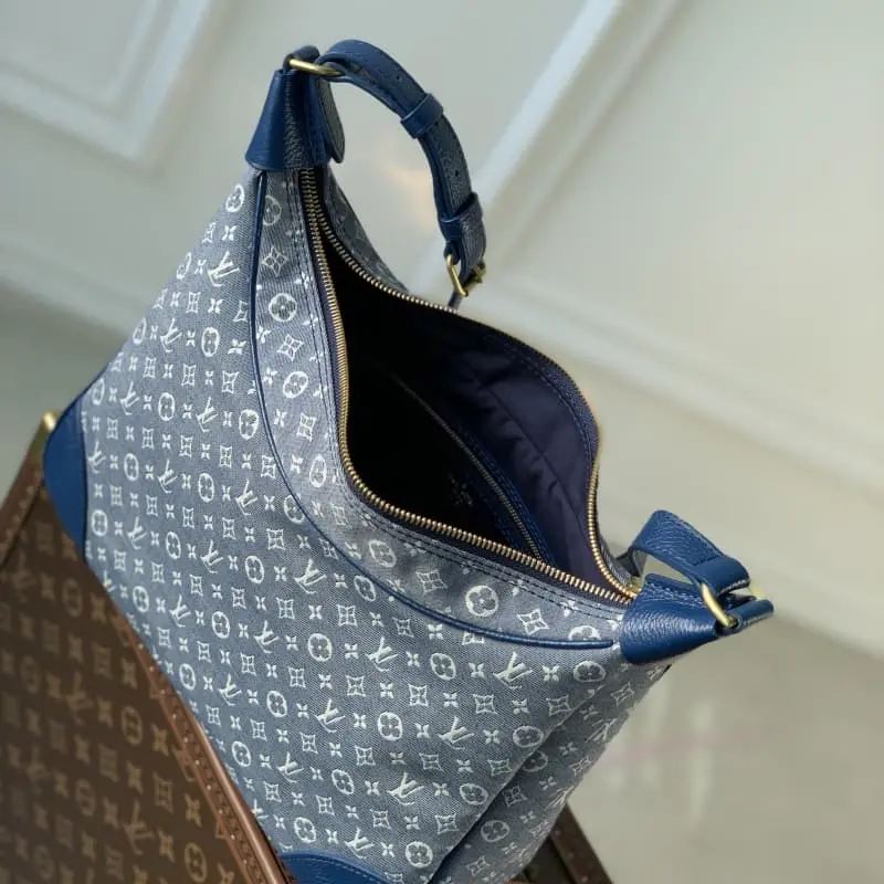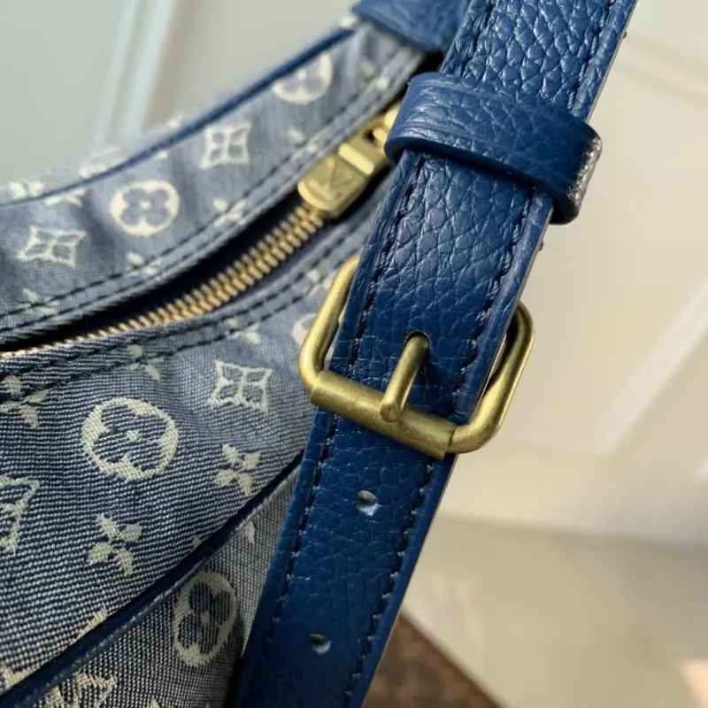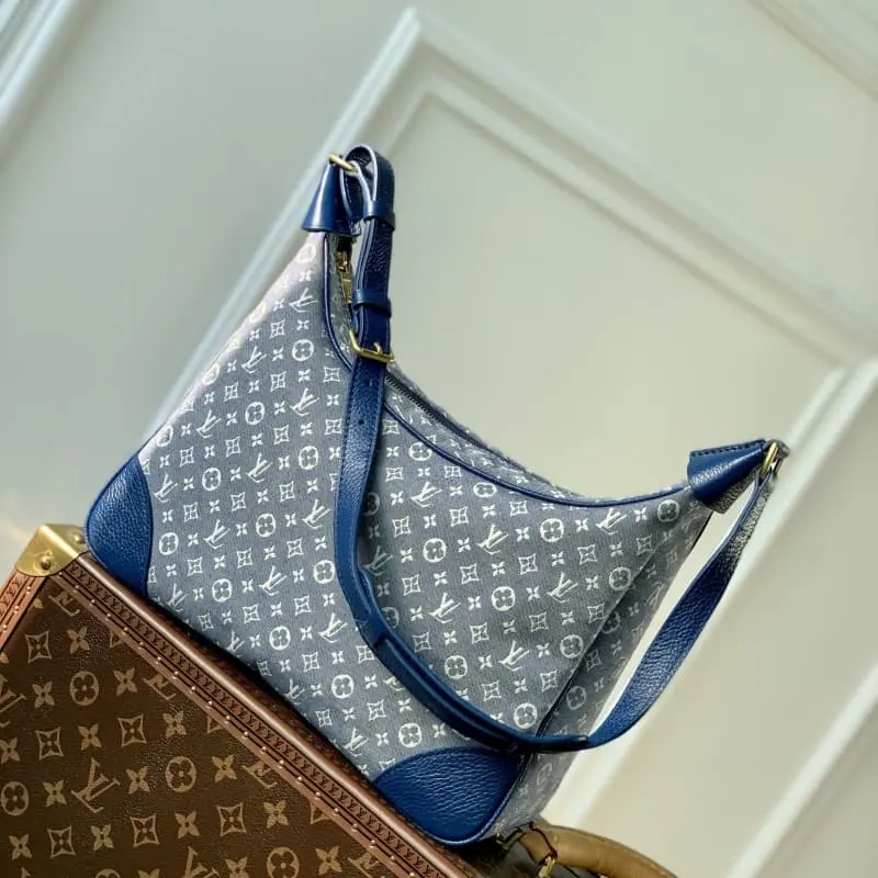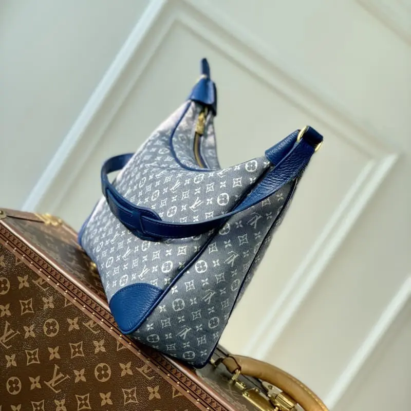 M95225 Blue denim croissant bag, boulogne handbag, vintage croissant bag made of classic monogram canvas, adjustable shoulder strap for crossbody or shoulder, large capacity pockets to hold daily necessities. Unisex, classic and timeless. Size: 19.0??30.0??10.0cm.