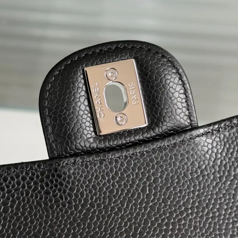 CF-Medium 25cm-Lychee Grain Cowhide-Black Silver